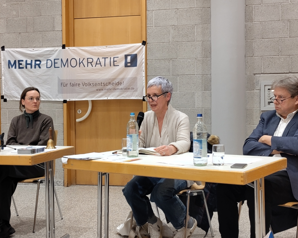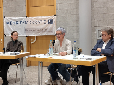 Wie mühsam der aktuelle Weg ist, schilderte Anja Plesch-Krubner. Als Vertrauensperson des Volksantrags für G9 berichtete sie aus der Praxis: Ein bürokratischer Hürdenlauf voller Fußnoten und Fallstricke, bei dem Unterschriften reihenweise für ungültig erklärt werden, nur weil ein Kästchen nicht korrekt angekreuzt wurde. Gleichzeitig machte sie deutlich: Direkte Demokratie wirkt, auch wenn sie nicht eins zu eins umgesetzt wird. Der G9-Volksantrag führte zu einer Gesetzesänderung und zeigte, dass beharrliches Bürgerengagement politische Entscheidungen verändern kann.